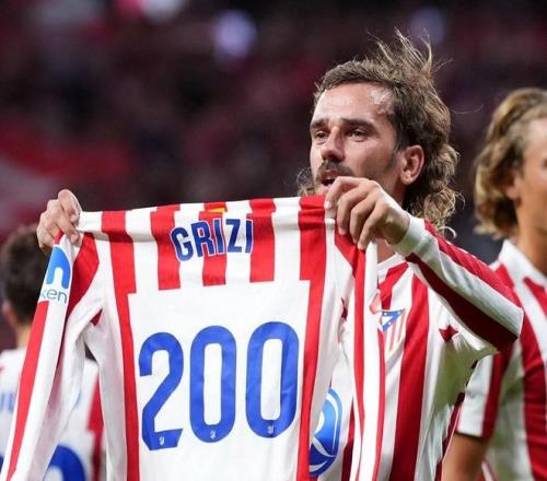 這是他代表馬競在各項賽事打入的第200球,這位法國前鋒在進球后展示“200號”球衣。