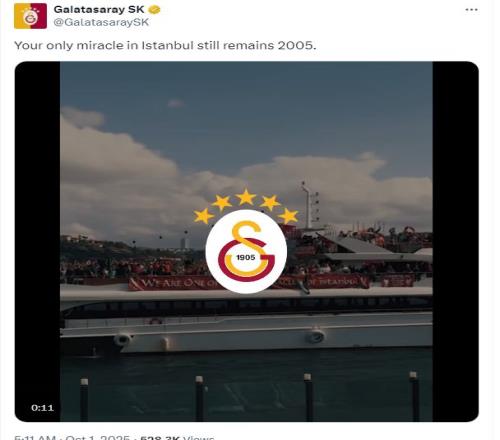 加拉塔薩雷在主場以1-0力克英超領(lǐng)頭羊利物浦,這也爆出了一大冷門!在比賽結(jié)束后,加拉塔薩雷隊在社媒上,也對利物浦進行調(diào)侃:“在伊斯坦布爾的比賽里,你們唯一的奇跡仍然是在2005年?!?/p>