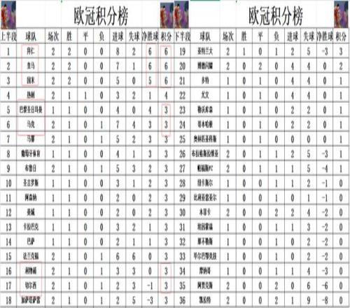 積分榜方面,皇馬,國米和拜仁今天都是輕松大勝,都是獲得了兩連勝,拜仁1個進球優(yōu)勢力壓皇馬登頂,國米則是差拜仁皇馬1個凈勝球,排在第3。馬競今天又是一場大勝,他們暫時升至第6,排在衛(wèi)冕冠軍巴黎之后。利物浦今天又輸球,遭遇英超歐冠雙線連敗,跌到第第16,他們身后是取得首勝的切爾西。