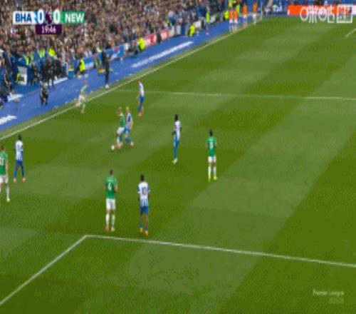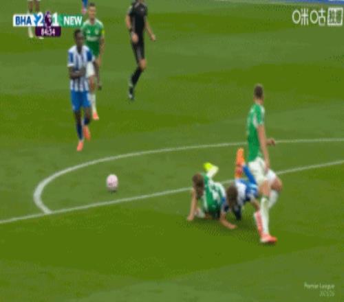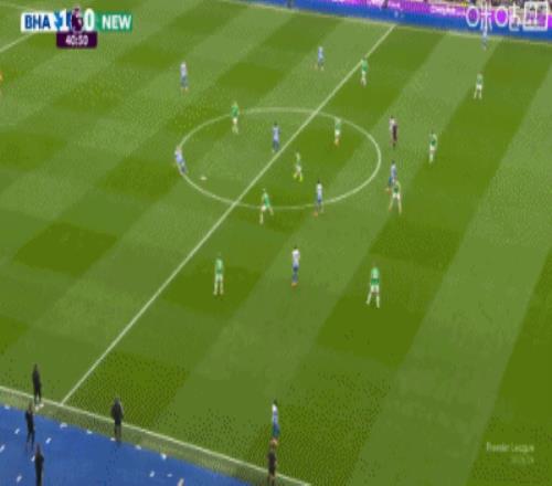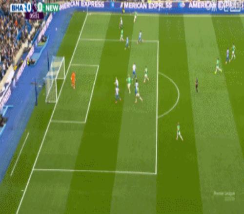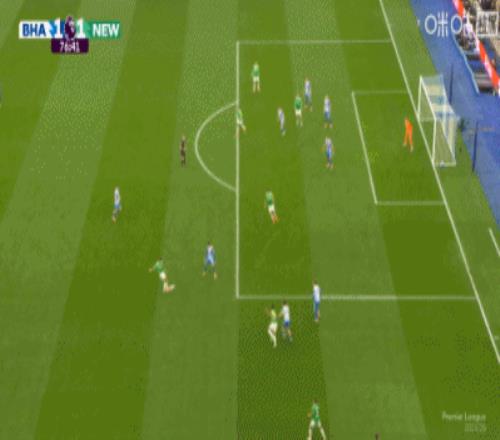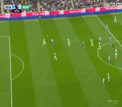 第41分鐘,維爾貝克單刀挑射破門,布萊頓1-0紐卡