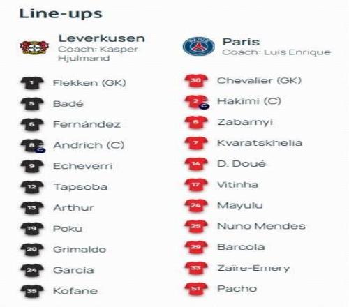 北京時間10月22日03:00,歐冠聯(lián)賽階段第3輪展開較量,巴黎圣日耳曼客場對陣勒沃庫森。賽前雙方首發(fā)公布。